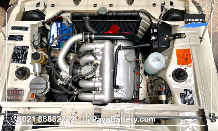 باتری کمکی بی ام و 2002 در محفظه موتور قرار دارد. این مکان برای دسترسی آسان جهت بررسی، نگهداری یا تعویض طراحی شده و از باتری در برابر لرزشهای رانندگی اسپرت، گرما و رطوبت محافظت میکند. باتری در محفظهای پلاستیکی قرار گرفته تا ایمن بماند. برای دسترسی، کاپوت را باز کرده و پوشش محفظه را بردارید. با توجه به سیستمهای برقی حساس 2002، تعویض باید توسط تکنسینهای حرفهای، مانند تیم پایا باتری، انجام شود تا از آسیب به اجزای برقی جلوگیری گردد. نصب صحیح باتری با ظرفیت 74 آمپرساعت (قالب L3)، پایه کوتاه و قطب چپ برای عملکرد ایمن و پایدار سیستمهای برقی، از جمله استارت موتور و روشنایی، ضروری است.
