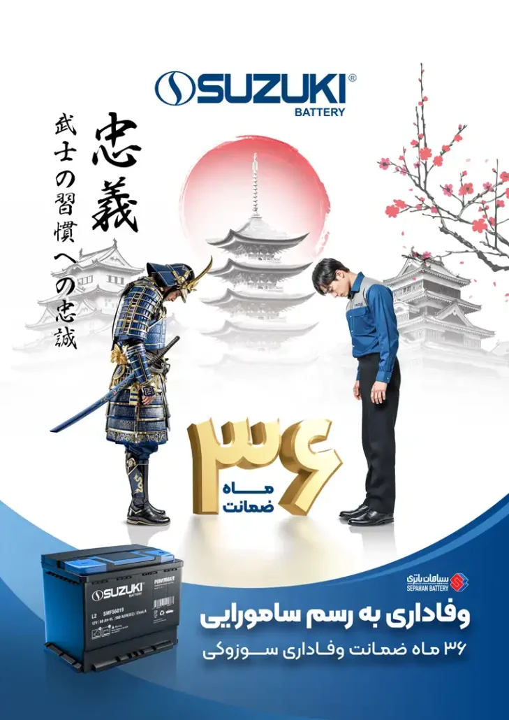 باتریهای سوزوکی تا ۷۴ آمپر با گارانتی معتبر ۳۶ ماهه عرضه میشوند. این گارانتی به دو بخش تقسیم میشود: